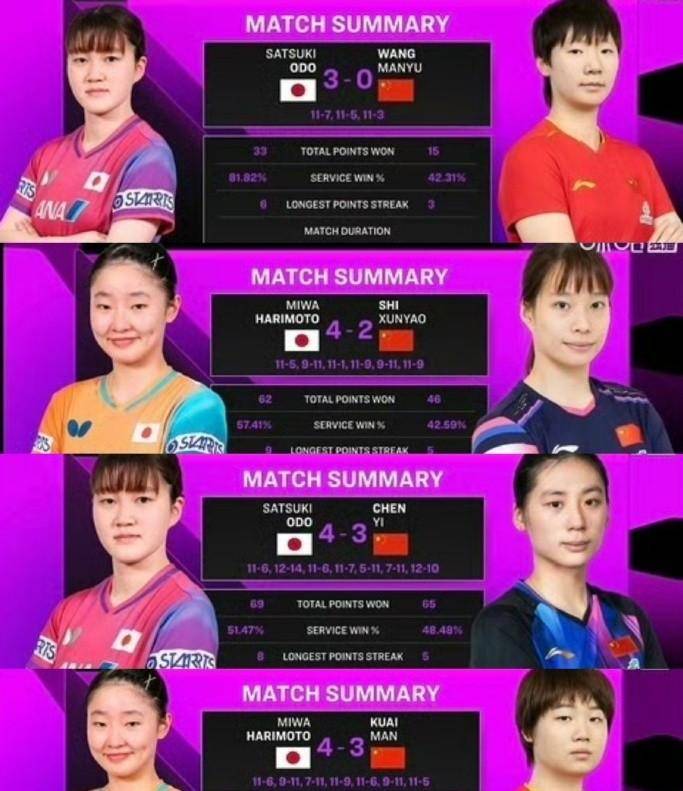 这种战略转向,使得像大藤沙月这样技术风格相对主流、且对阵中国顶尖选手战绩并不突出的运动员,在竞争中处于不利位置。她的打法被认为与张本美和、早田希娜存在同质化问题,在需要“出奇制胜”的团体赛排兵布阵中,可能不是教练组的首选。从2026年2月15日在金奈夺冠的意气风发,到2月25日得知落选世乒赛名单的失落,大藤沙月在短短十二天内体验了竞技体育的极速冷暖。